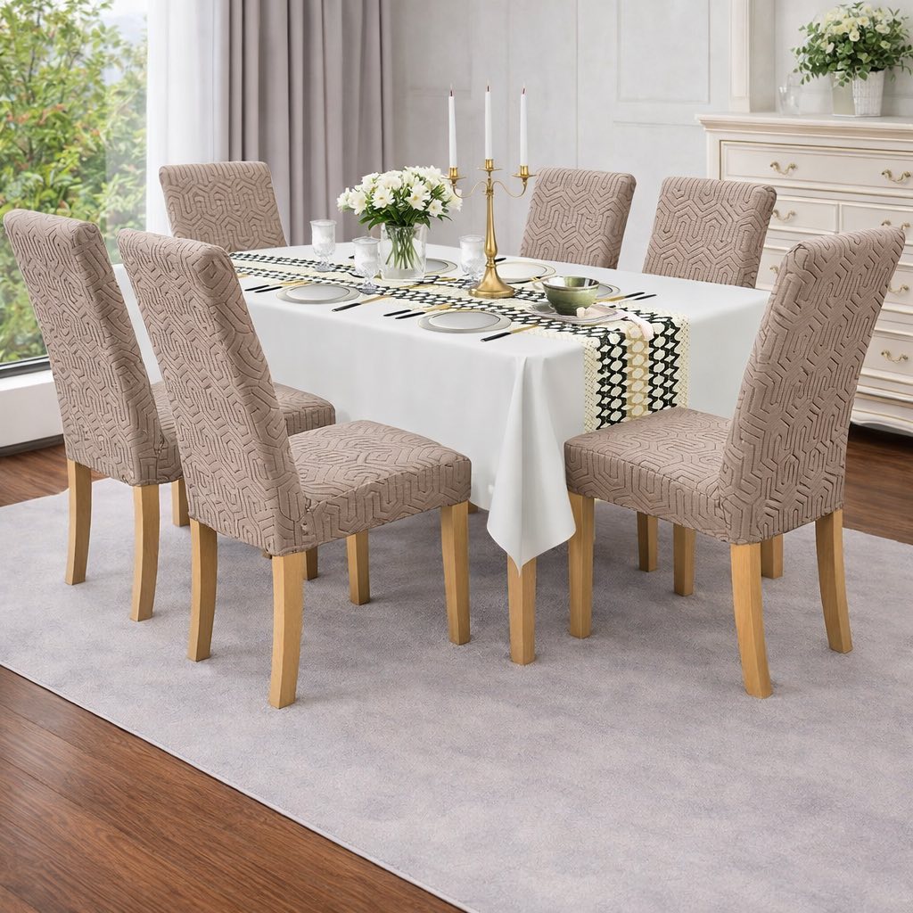 Ανανεώστε εύκολα και οικονομικά την τραπεζαρία σας με τα ανάγλυφα καλύμματα καρέκλας με σχέδιο φύλλων, σχεδιασμένα για άψογη εφαρμογή και κομψό αποτέλεσμα.