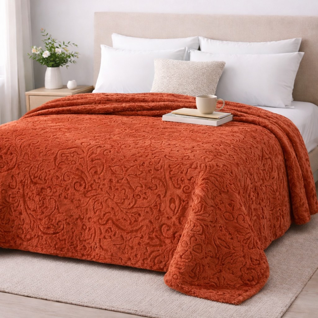 Κουβέρτα βελουτέ ανάγλυφη υπέρδιπλη, εξαιρετικά απαλή και ζεστή, ιδανική για άνεση και χαλάρωση τις κρύες νύχτες. Διαθέτει κομψή ανάγλυφη υφή που προσθέτει στυλ στο υπνοδωμάτιο, ενώ το βελούδινο ύφασμα προσφέρει μοναδική αίσθηση απαλότητας. Ανθεκτική και εύκολη στη φροντίδα, αποτελεί ιδανική επιλογή για καθημερινή χρήση.